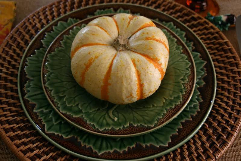 I'm thinking a nice pork tenderloin, butternut squash soup, savory bread pudding with chanterelle mushrooms and a lovely aged cabernet sauvignon would be perfect with this table setting!