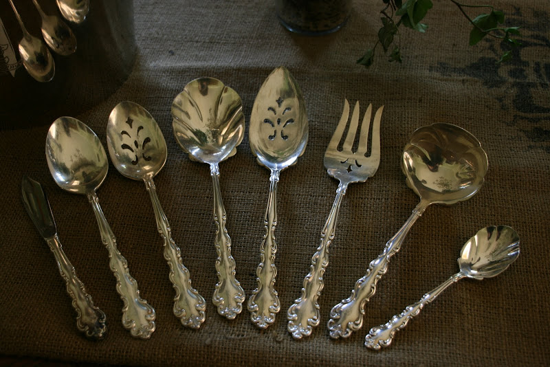 They were all wrapped up in a towel in a box. I wasn't sure what or how much I was actually getting until I got home. I counted twelve 5-piece place settings, with 18 teaspoons, and the serving pieces. It is called Modern Baroque by Oneida Community.