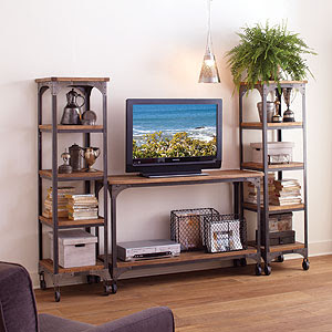 Opposite the fireplace, I added another etagere, which was needed to complete the media wall, and also provides a lot more storage opportunities.